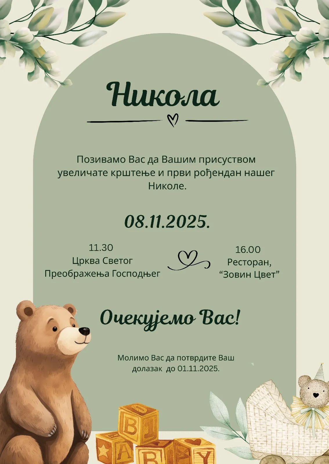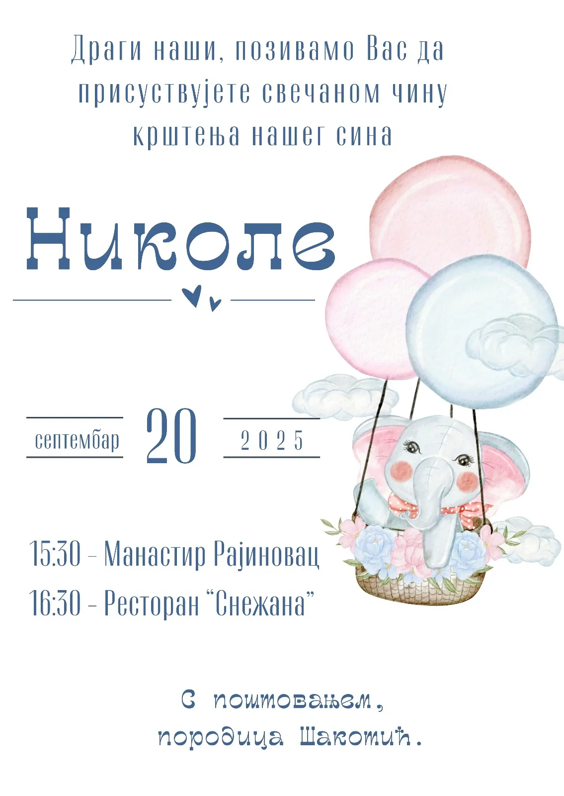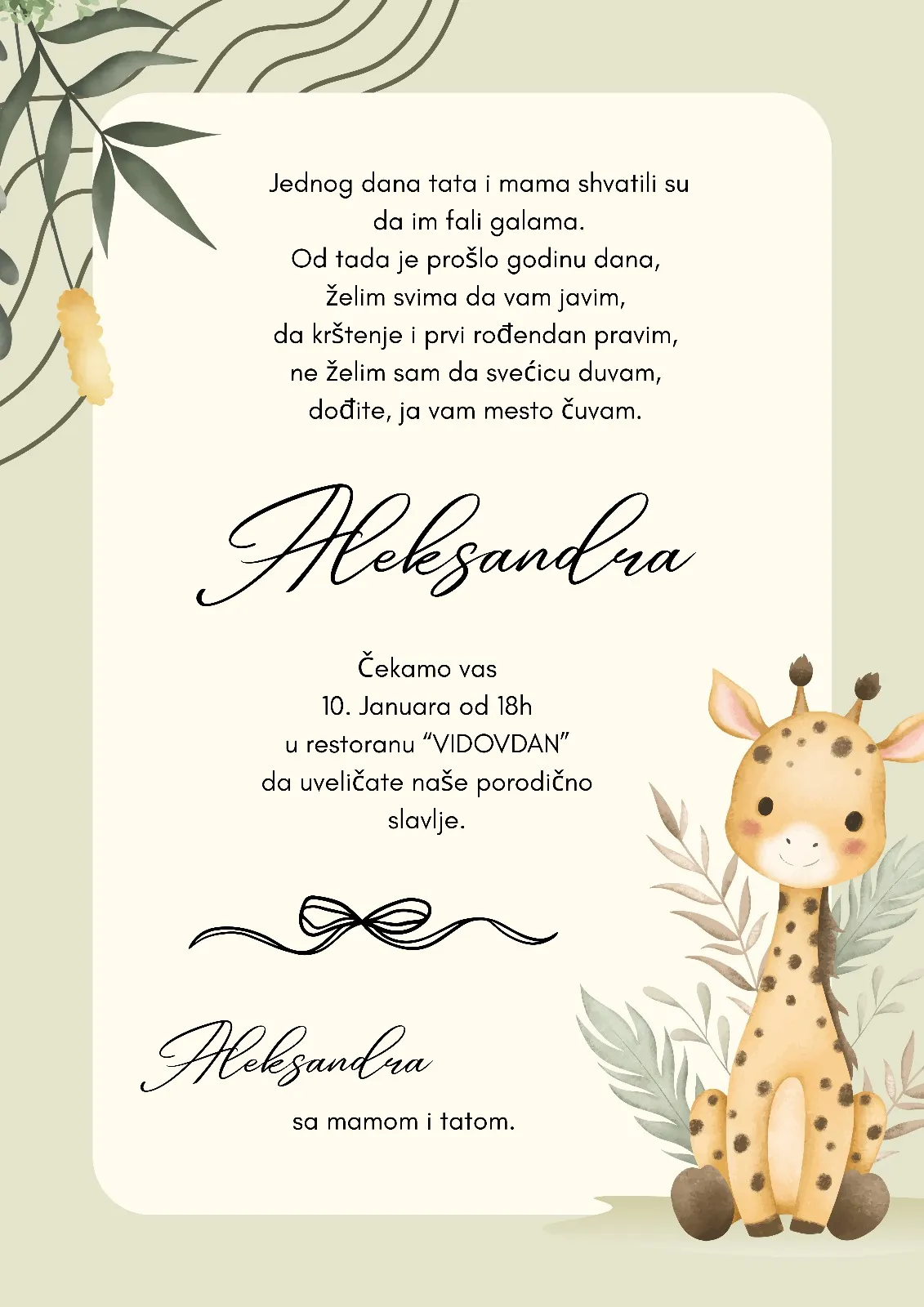 Izaberete model pozivnice koji želite, pošaljete nam Vaš tekst, izabrete da želite ćirilicu ili latinicu i koji font slova.