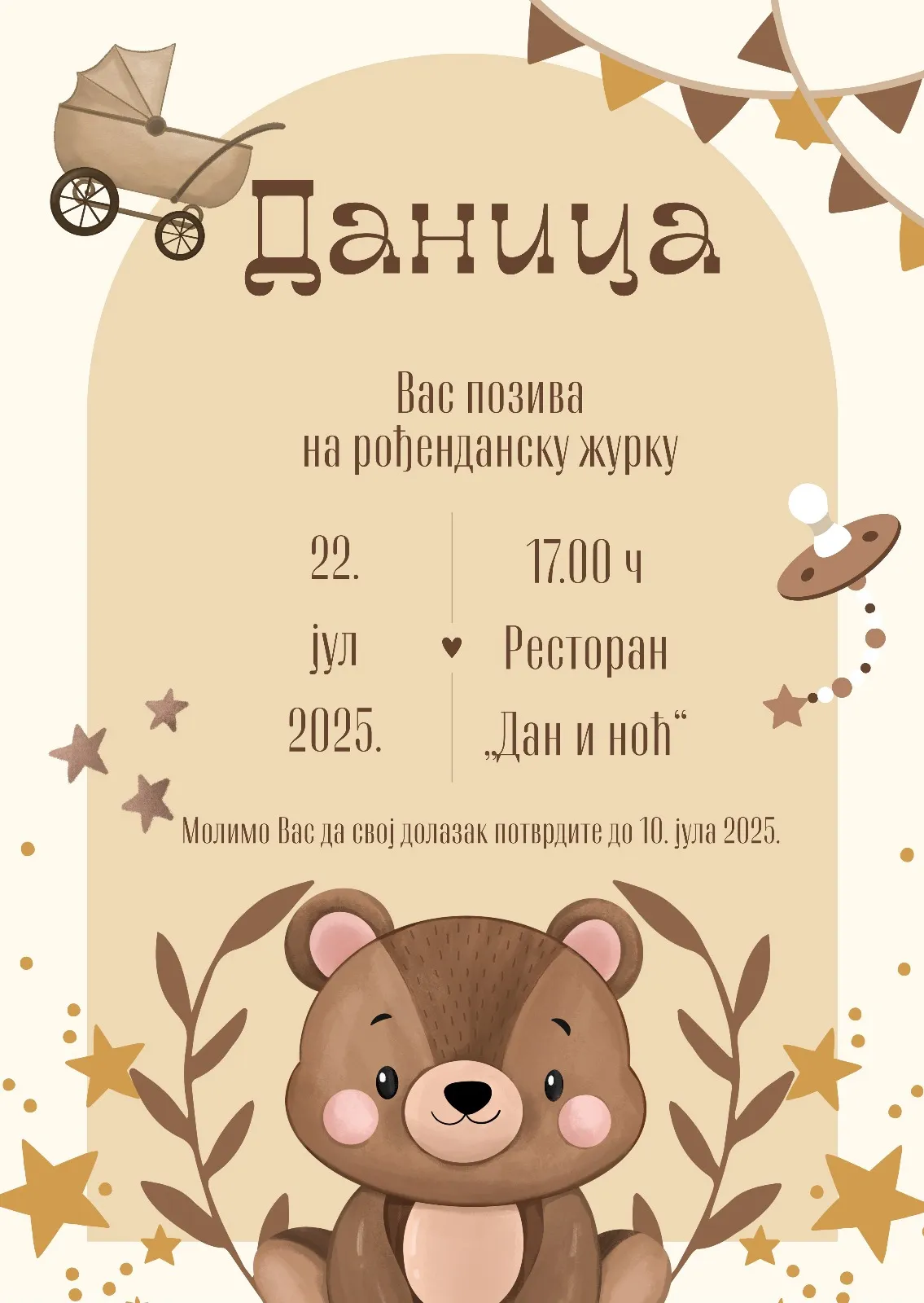 Iz kataloga izaberite model pozivnice koja vam se najviše sviđa.Zatim popunite formular za narudžbu gdje ćete navesti svoj tekst i odabrati latinicu ili ćirilicu, kao i željeni font.