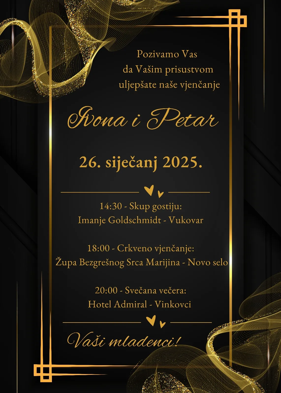 Ako imate dva različita teksta, to se računa kao dvije štampe i u tom slučaju naplaćujemo dva puta štampu pozivnica.